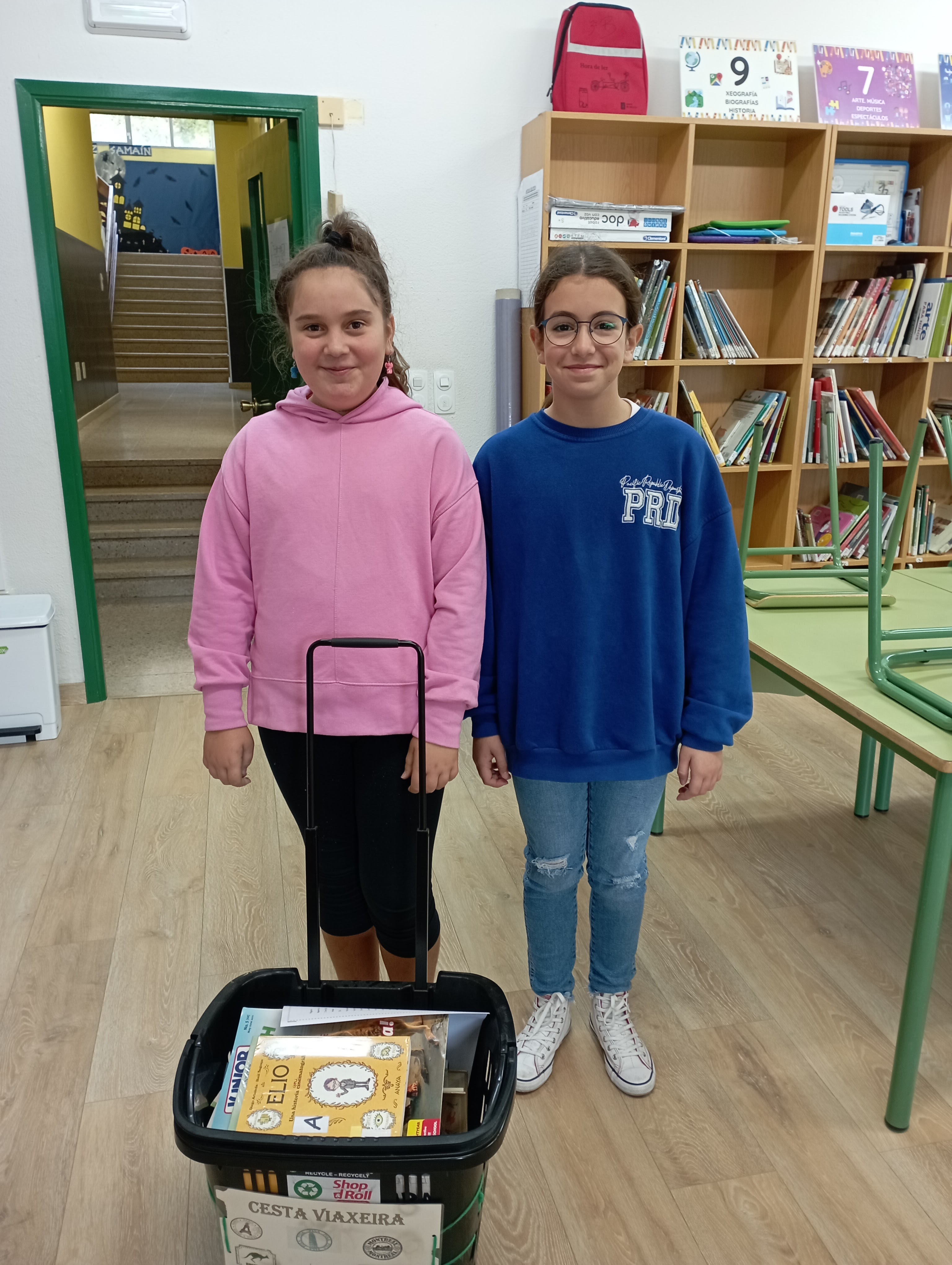 Os maiores, tiñan que recoller unha planilla na biblio e cubrir o nome dos 10 libros que estaban polo patio axudándose dunhas pequenas pistas.
